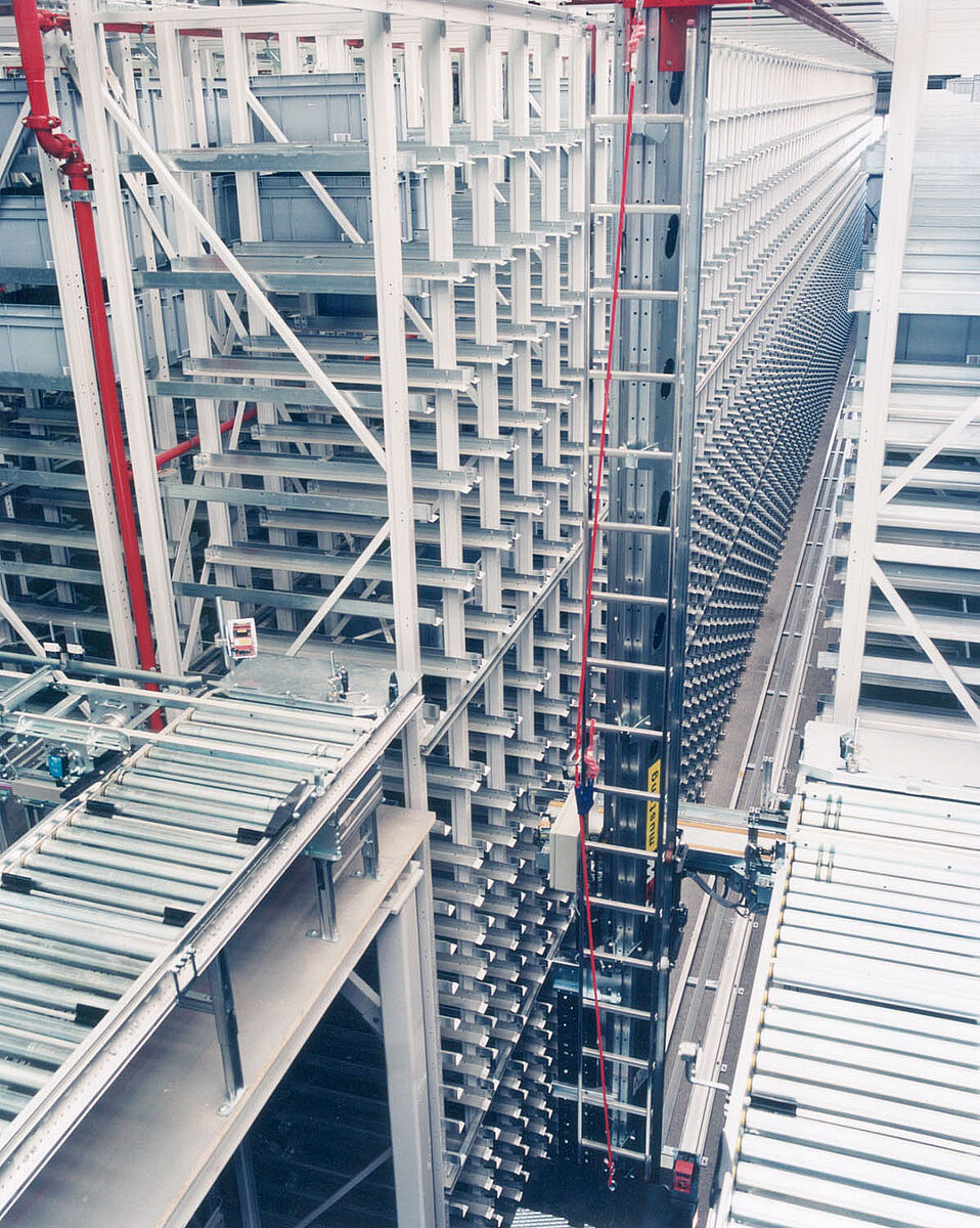Optymalizacja magazynowania dzieki czesciowej lub pełnej automatyzacji procesu wprowadzania na magazyn i wyprowadzania z magazynu. Zgodnie z zasada "Towar do osoby", wzrasta wydajnosc w przypadku wielu usług komisjonowania. W zaleznosci od potrzeb moze byc pobierany jeden lub kilka zestawów z róznymi arkuszami blachy lub wiazkami materiałów okragłych i transportowany do stacji przekazywania. Transport odbywa sie za pomoca dzwigu halowego lub urzadzen do obsługi regałów (RBG).