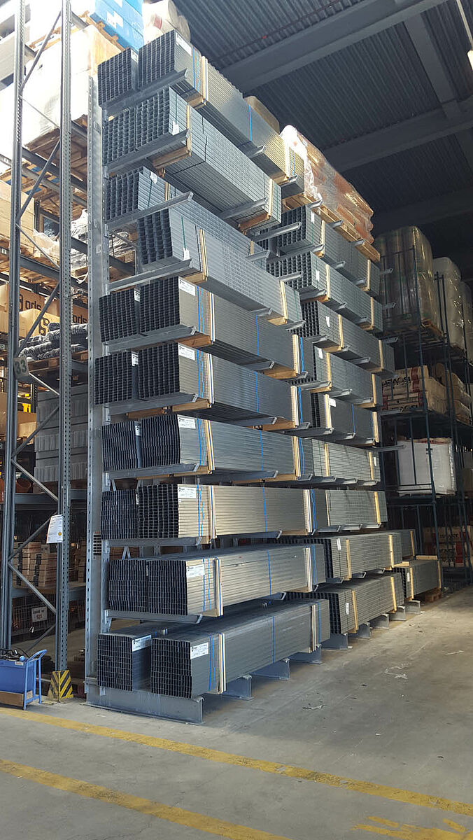 Idealny system magazynowy do przechowywania stali, arkuszy blachy i ciezkich wyrobów metalowych. Elastyczne ramiona wysiegnikowe z regulacja wysokosci uchylaja sie podczas uderzen do góry i na boki. Taki system chroni towar przed uszkodzeniami. Wszystkie regały wysiegnikowe sa produkowane, dostarczane i na zyczenie montowane zgodnie z wymaganiami klienta oraz dopasowane do magazynowanego materiału. Regały wysiegnikowe OHRA moga byc ustawiane w magazynach wewnetrznych, jak i zewnetrznych.
