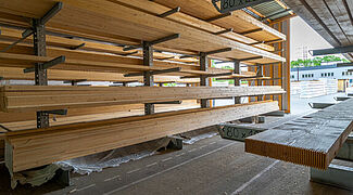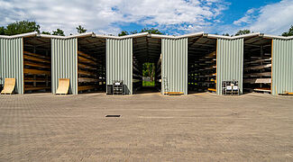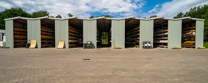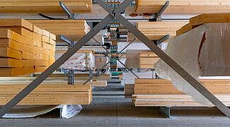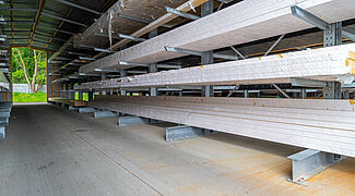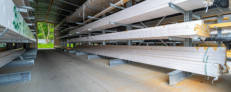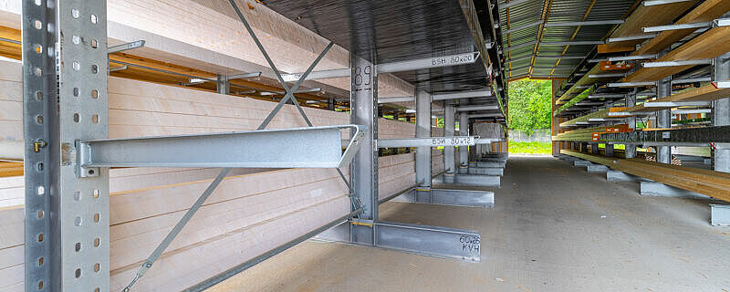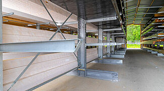 Dlatego też Abies Polska podjęła decyzję o zakupie regałów wspornikowych do magazynowania wyrobów drewnianych dotychczas składowanych na ziemi. OHRA dostarczyła łącznie osiem regałów, z których każdy wyposażony jest w sześć poziomów składowania. Najwyższy poziom znajduje się na wysokości 5 metrów – dzięki temu dostępna powierzchnia magazynu zewnętrznego może być znacznie lepiej wykorzystana. Każdy z regałów podtrzymuje z obu stron wystający na 2,7 metra dach, a ich rozmieszczenie powoduje, że dachy zachodzą na siebie. Dodatkową ochronę zapewnia okładzina ścian zewnętrznych, która zgodnie z wytycznymi urzędu budowlanego została wykonana z wysokiej jakości blachy. W ten sposób system regałów tworzy samodzielny, wysokiej jakości budynek.