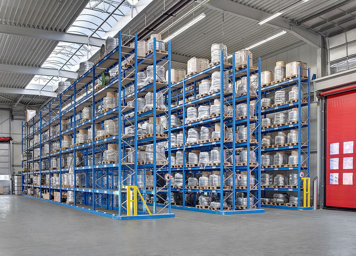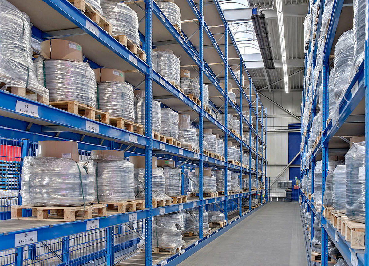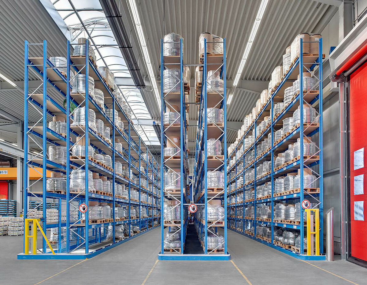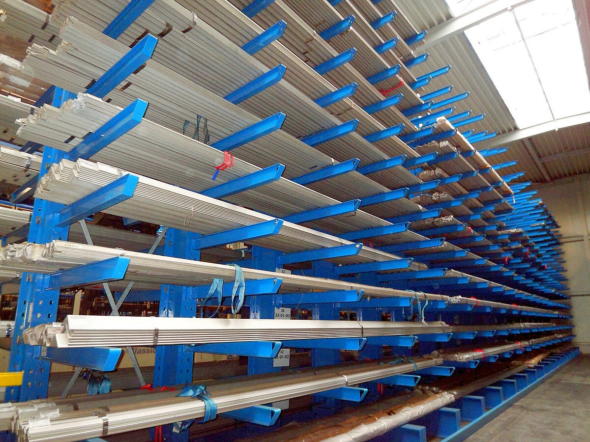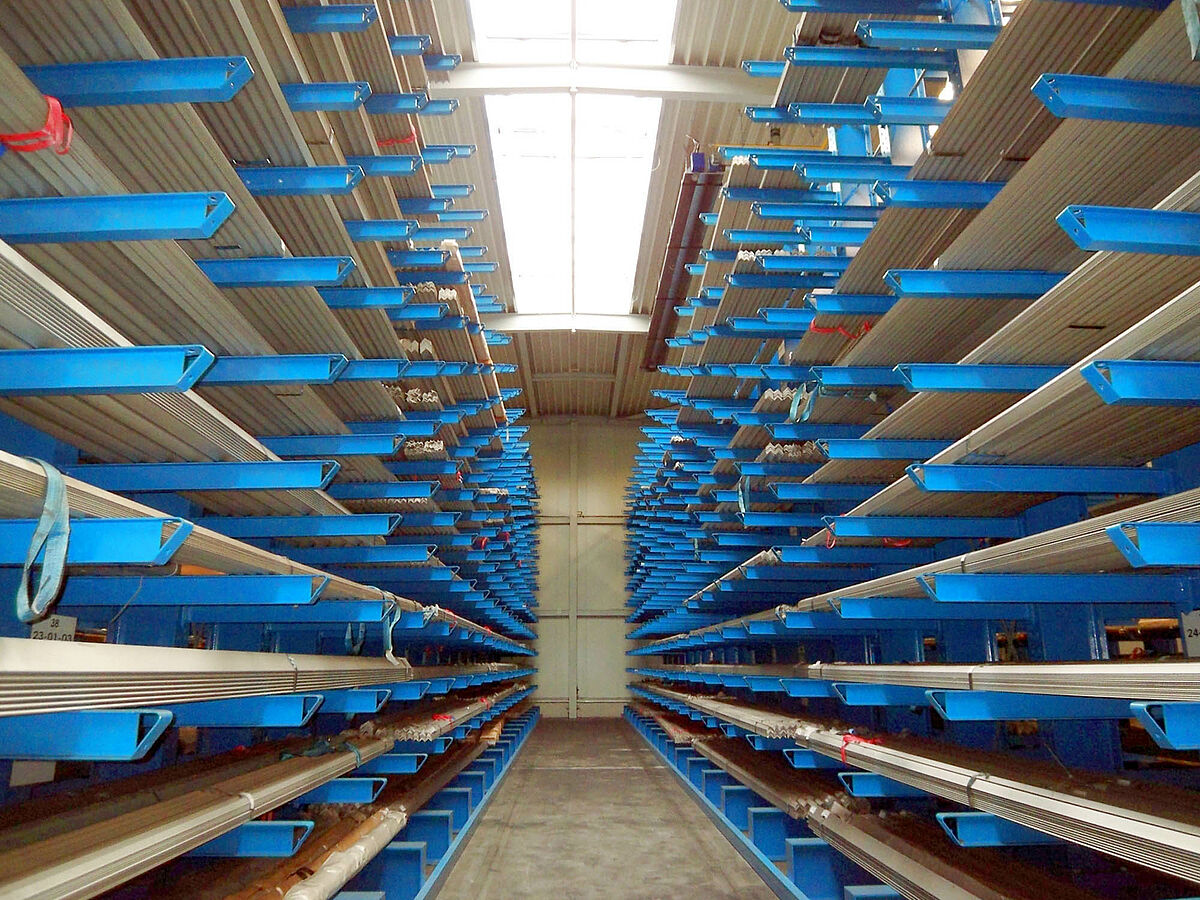 Rozwiązaniem był system regałów wspornikowych o wysokości 7,50 m z 14 poziomami składowania jeden nad drugim, przy obciążeniu na każdy wspornik 1.200 kg o długości 1.250 mm.