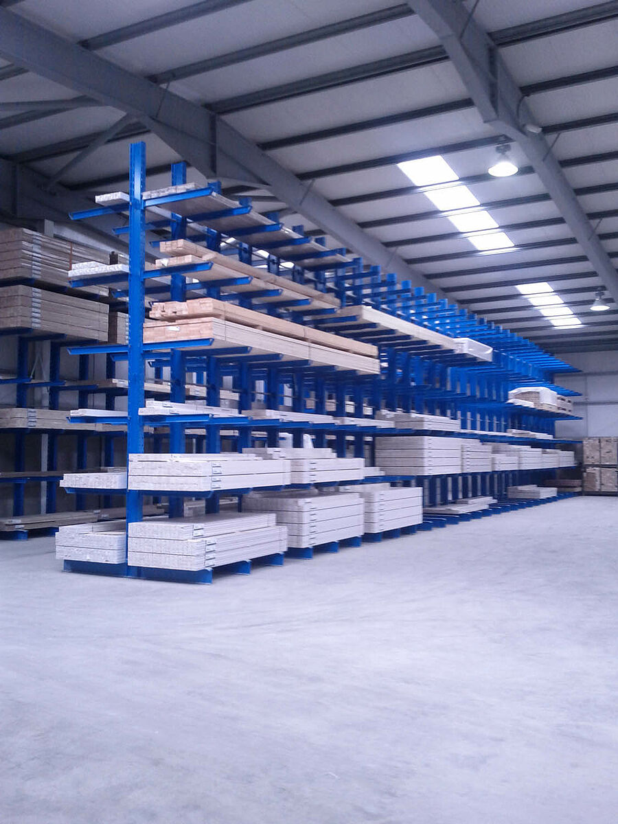 Irlandzka, rodzinna firma Agnew & Co oszczędza nie tylko dzięki odpowiednio wykorzystanej przestrzeni magazynowej lecz również ograniczając czas pracy podczas komisjonowania – a wszystko dzięki systemowi regałów wspornikowych. Instalacja mierząca łącznie 200 metrów regałów o wysokości 6m i głębokości 1,2m gwarantuje systematyczne magazynowanie wysokiej jakości desek profilowanych produkowanych przez Agnew.