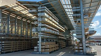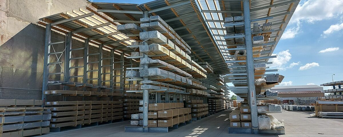 Firma ALBIXON w końcu znalazła u producenta OHRA rozwiązanie regałowe dostosowane do swoich wymagań: trzy rzędy regałów wspornikowych o wysokości 7300 milimetrów pozwalają na najlepsze wykorzystanie dostępnej przestrzeni. Udźwig na jedno ramię wspornikowe wynosi 500 kilogramów. Na wspornikach regałów znajdują się również dachy nakładane, z których część została pokryta przezroczystym PVC – zapewnia to odpowiednią jasność również w części podłogowej.