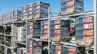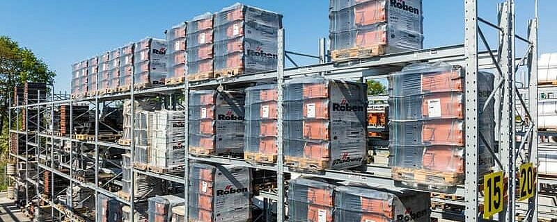 Regały paletowe, z których większość jest zaprojektowana jako podwójne rzędy regałów, oferują łącznie około 3 400 miejsc składowania. Długość poziomów składowania regałów wspornikowych wynosi łącznie ponad 1 250 metrów, rozmieszczonych na sześciu poziomach składowania. Wszystkie regały do użytku zewnętrznego są cynkowane ogniowo, a niektóre regały wspornikowe są również wyposażone w dach. Wysokość i głębokość użytkowa pionowych regałów zostały również dostosowane do portfolio listew firmy Benthack. Dzięki pionowym regałom dystrybutor materiałów budowlanych może zaprezentować różne wymiary i wersje swoich listew w sposób przyjazny dla klienta.
