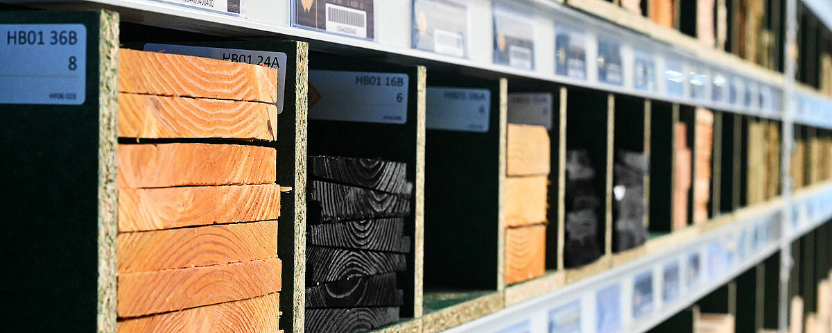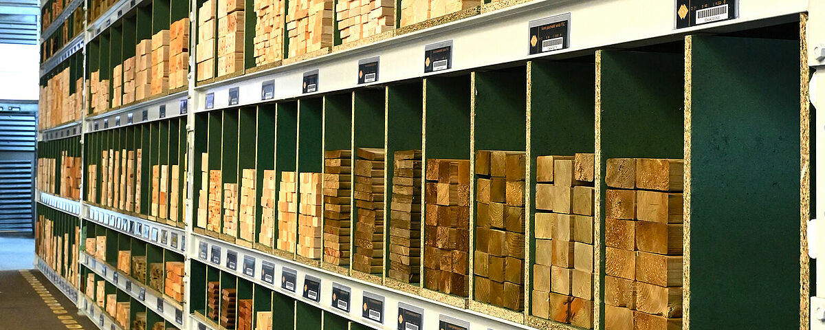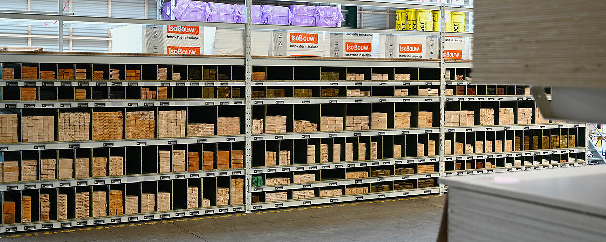 Dla uzyskania długiej powierzchni magazynowej firma OHRA zamontowała na poszczególnych poziomach płyty wiórowe, pełniące funkcję półek. Dzielą je płyty wiórowe o grubości 18 mm, które firma Brentjens zamontowała samodzielnie. Dzięki temu powstają półki o różnej szerokości, w które można w łatwy sposób wsuwać w kierunku wzdłużnym listwy i łaty. Każdą półkę wypełnia się tylko jednym typem artykułu, dzięki czemu klient uzyskuje wgląd w różne przekroje i może szybko znaleźć żądany produkt. Górną część regału wykorzystuje się dodatkowo w „klasyczny” sposób jako regał paletowy lub magazynowy, dzięki czemu powstaje dodatkowa powierzchnia magazynowa dla najróżniejszych materiałów.