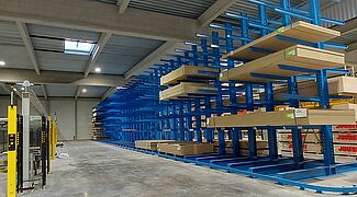 Grupa handlująca materiałami budowlanymi Derrey wyposażyła regałami wspornikowymi OHRA swój nowy oddział „Gedibois Derrey” w Metz. Dzięki indywidualnym rozwiązaniom specjalnym regały można dokładnie dostosować do asortymentu produktów, a także do warunków budowlanych. Oprócz standardowych regałów wspornikowych stosowane są również regały asymetryczne: są to regały dwustronne, w których wsporniki po lewej i prawej stronie różnią się udźwigiem i długością. W ten sposób można efektywnie przechowywać różnorodne rodzaje drewna i płyt, oszczędzając miejsce. Ponadto niektóre regały znajdują się w otwartej hali, co oznacza, że pierwsze słupy rzędu regałów mogą być narażone na działanie czynników atmosferycznych. Z tego powodu OHRA ocynkowała ogniowo przednie słupy, natomiast pozostałe elementy zostały ekonomicznie pokryte powłoką proszkową.