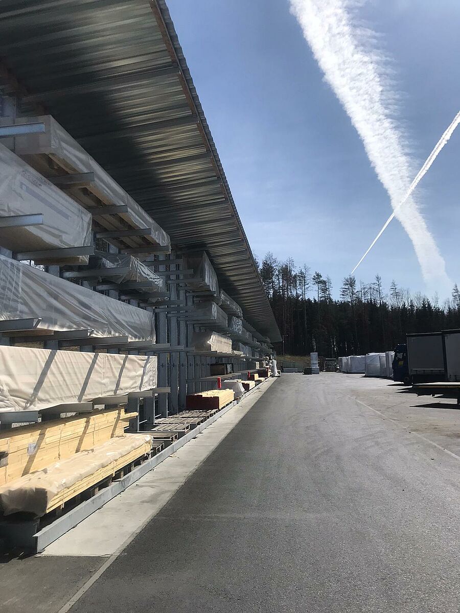 Do produkcji drewnianych budynków niskoenergetycznych w zakładzie Žákavá, firma DFH Haus CZ rozbudowała i zmodernizowała swoje magazyny z wykorzystaniem systemów regałowych firmy OHRA. W części zewnętrznej regały wspornikowe o długości całkowitej wynoszącej prawie 250 metrów na pięciu poziomach magazynowych na pakiety materiałów budowlanych o długości nawet 13 metrów umożliwiają przechowywanie drewnianych materiałów budowlanych, a zintegrowany dach zabezpiecza je przed wpływami atmosferycznymi. We wnętrzu regały paletowe i wspornikowe z dnami kratowymi umożliwiają elastyczne przechowywanie wielu różnych artykułów – od pakietu ze śrubami po kompletne, prefabrykowane części domów.