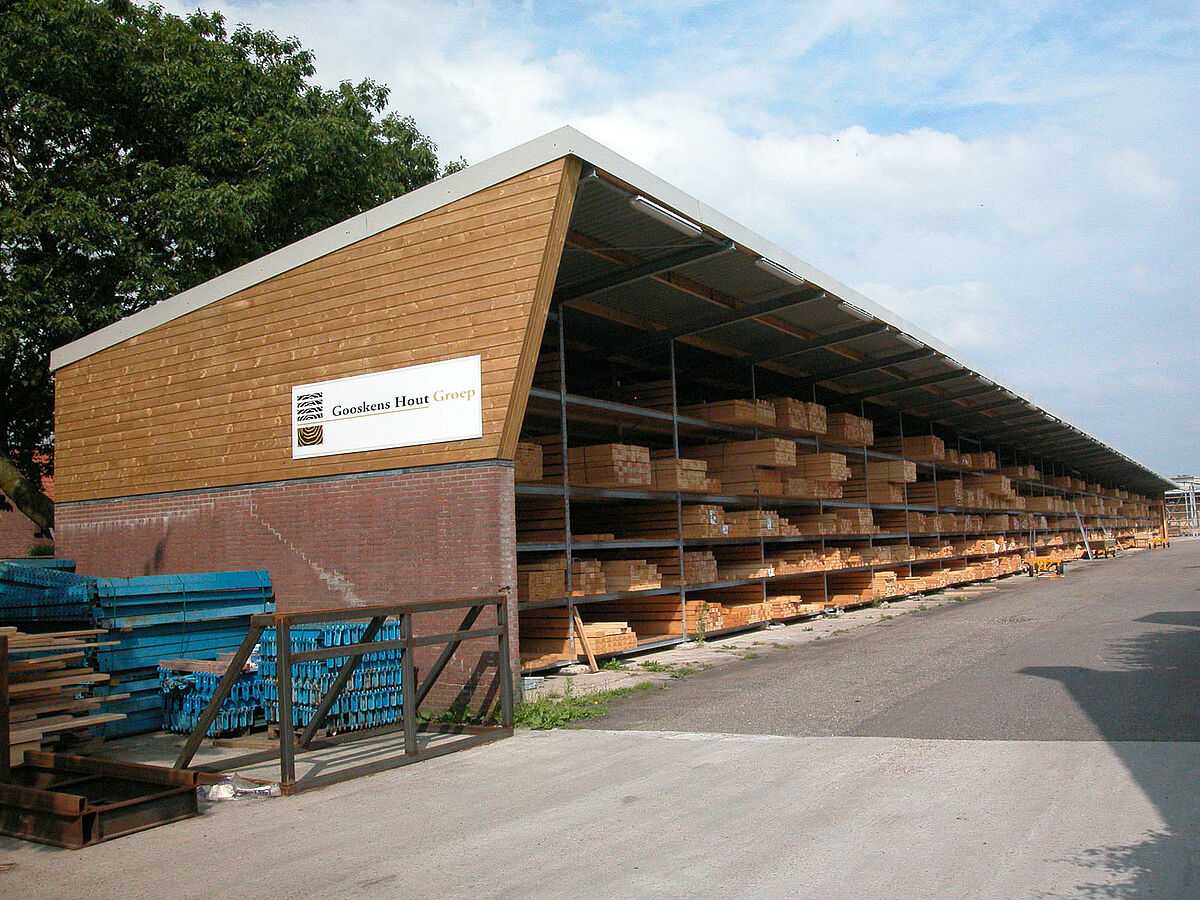 Dotychczasowy, zbudowany przez firmę magazyn drewna z dwoma poziomami składowania był wykorzystywany do granic możliwości. Bowiem również klienci Gooskens racjonalizują swoje procesy, zmniejszając swoje zasoby magazynowe. Wymagają oni tym samym większych zapasów od dostawców drewna, aby zapewnić sobie szybkie i niezawodne dostawy. Dlatego firma Gooskens zdecydowała się zbudować nowy magazyn. Wyróżnia go wykonanie z regałów typu „plaster miodu”, tzn. belki drewniane i deski są ułożone wzdłuż w głębokich na 6.500 milimetrów schowkach. Umożliwia to lepszy przegląd składowanych rodzajów profili oraz szybsze procesy sprzedaży.