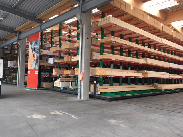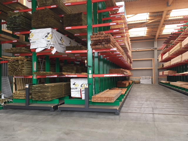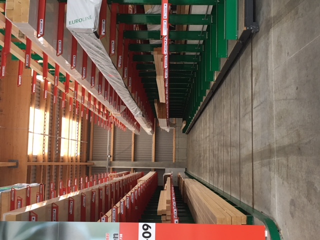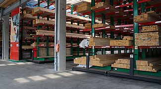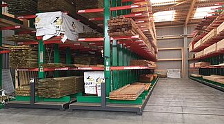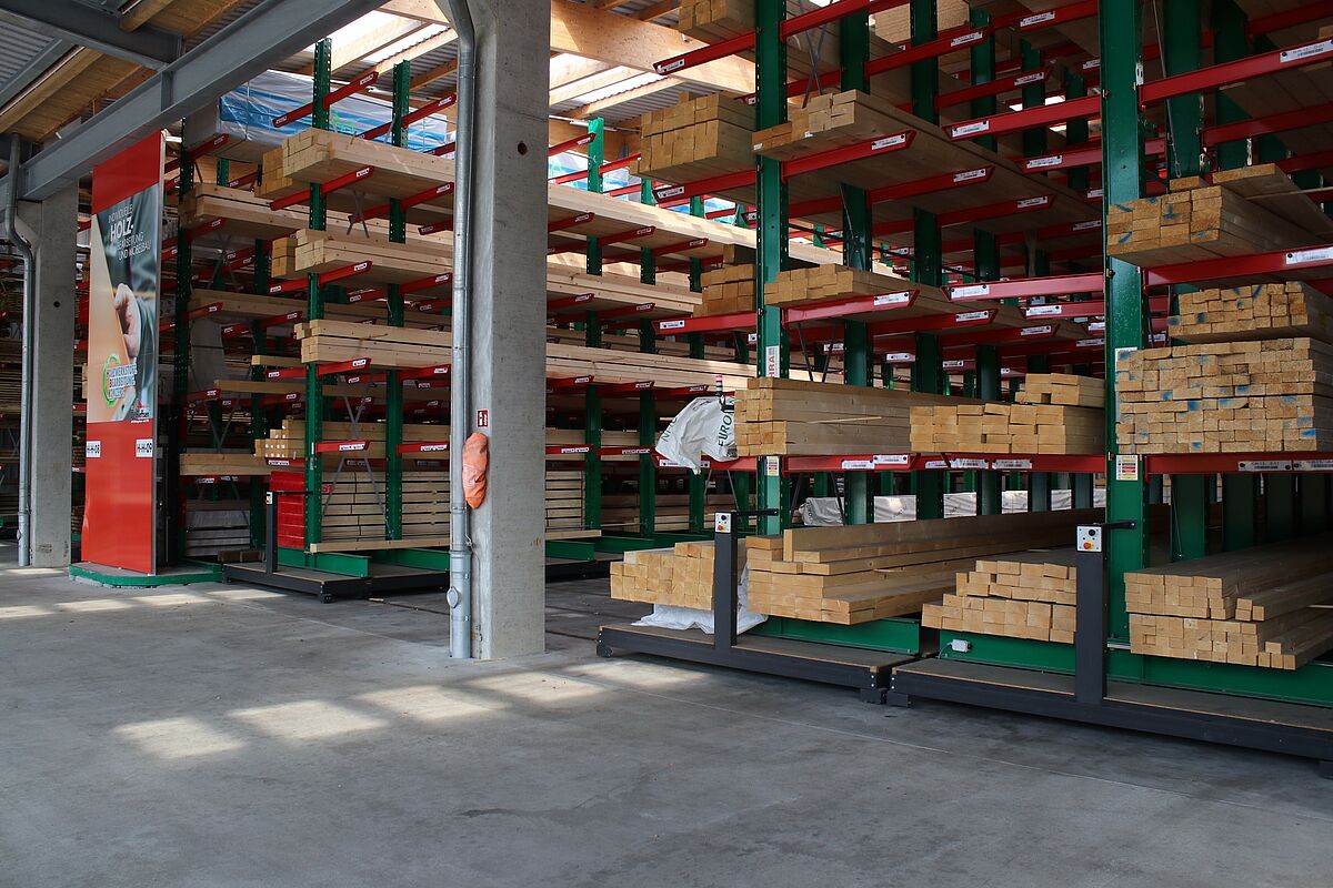 Materiały budowlane są komisjonowane w magazynie na zamówienie rzemieślników i klientów indywidualnych. Do przechowywanych w magazynie artykułów należą różnego rodzaju materiały budowlane, drewno o długości do 13 metrów oraz różnego rodzaju towary workowane. Aby móc oferować klientom jak najszersze portfolio towarów, w trakcie modernizacji skupiano się przede wszystkim na zwiększaniu pojemności magazynowej – do tej pory artykuły były przechowywane wyłącznie w wielorzędowych regałach wysięgnikowych.