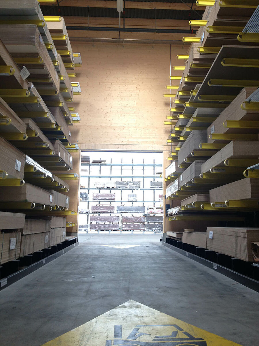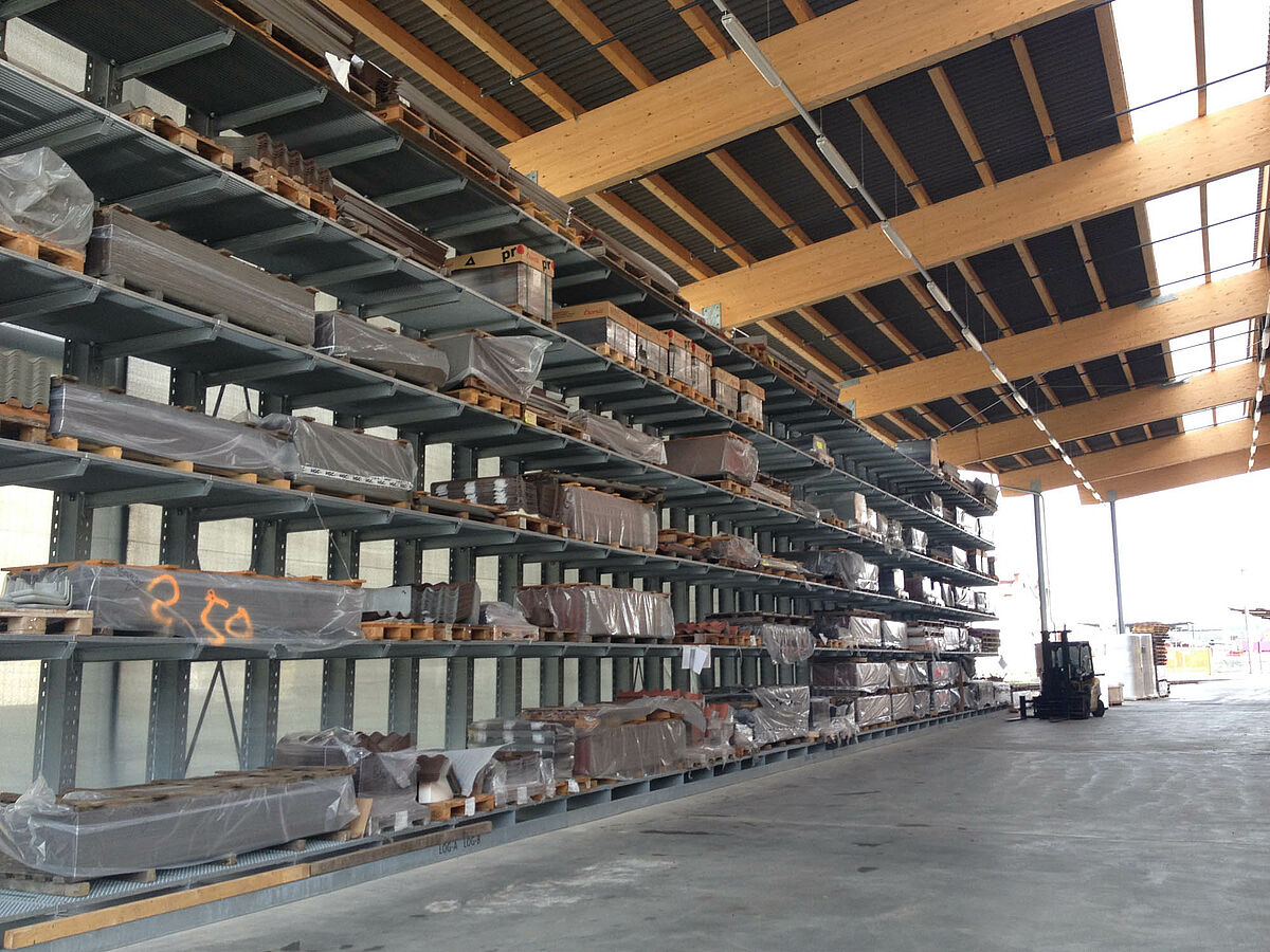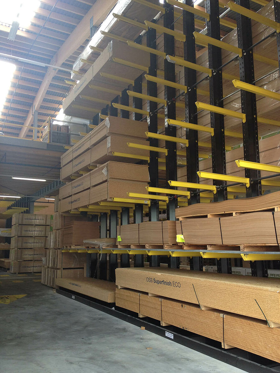 Magazyn w Biel jest podzielony na dwie strefy drive-through na prawie 3000 metrów kwadratowych. W hali OHRA zamontowała prawie 600 metrów bieżących regałów wysięgnikowych o wysokości 9 metrów na siedmiu poziomach, do głębokości 2,5 metra, które mogą być obsługiwane przez czterodrożne wózki widłowe. Regały pionowe na końcu szeregu regałów umożliwiają poza tym przejrzyste składowanie listew, profili i rur. Regały paletowe i wysięgnikowe w wersji ocynkowanej ogniowo na zewnątrz oferują miejsce na dalszych 600 palet. Do składowania materiałów izolacyjnych w konstrukcji hali przewidziano pomost o powierzchni 1000 metrów kwadratowych.