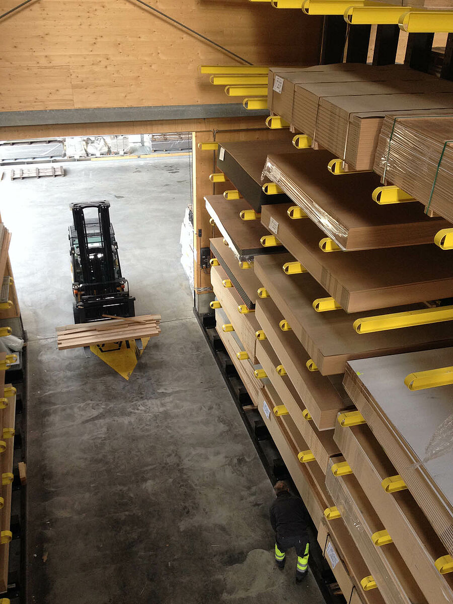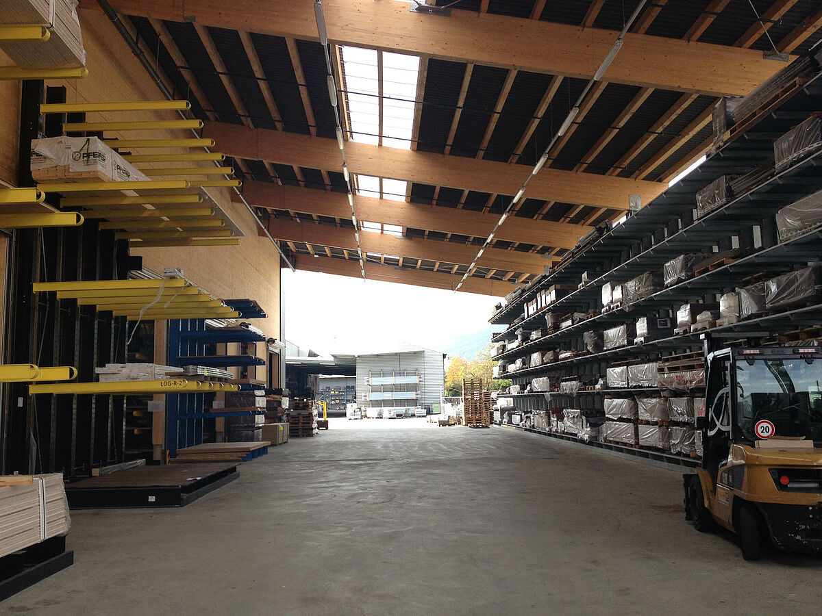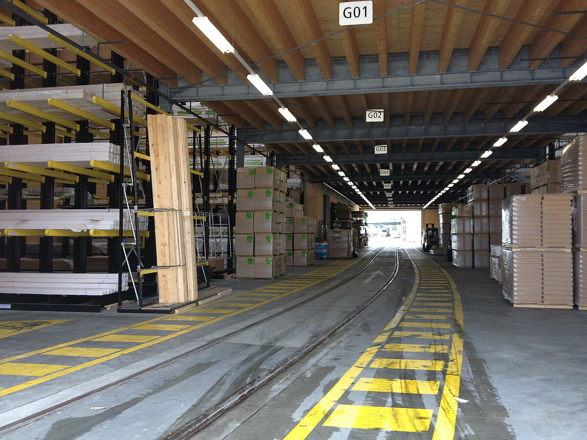Magazyn w Biel jest podzielony na dwie strefy drive-through na prawie 3000 metrów kwadratowych. W hali OHRA zamontowała prawie 600 metrów bieżących regałów wysięgnikowych o wysokości 9 metrów na siedmiu poziomach, do głębokości 2,5 metra, które mogą być obsługiwane przez czterodrożne wózki widłowe. Regały pionowe na końcu szeregu regałów umożliwiają poza tym przejrzyste składowanie listew, profili i rur. Regały paletowe i wysięgnikowe w wersji ocynkowanej ogniowo na zewnątrz oferują miejsce na dalszych 600 palet. Do składowania materiałów izolacyjnych w konstrukcji hali przewidziano pomost o powierzchni 1000 metrów kwadratowych.