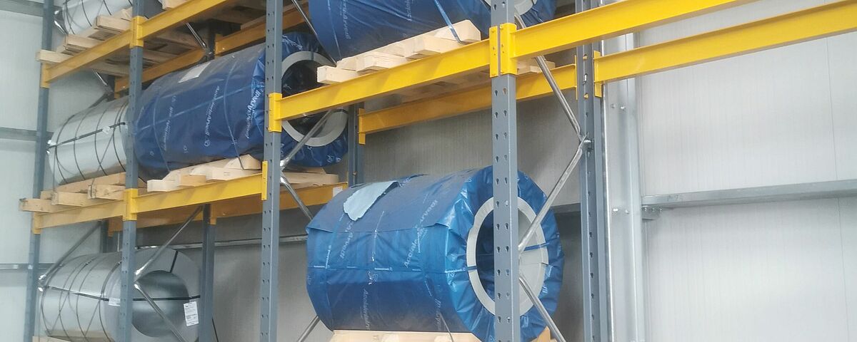 Zwoje najróżniejszych blach (nieżelaznych) są surowcem, z którego firma Invesztál produkuje różnorakie kształty i typy systemów dachowych i rynnowych. Do tej pory firma składowała je na podłodze lub w regale paletowym, który nie był idealny do przechowywania cewek. Dzięki nowym, dostosowanym do potrzeb klienta regałom paletowym o dużej nośności firmy OHRA udało się ograniczyć uszkodzenia zwojów i efektywnie wykorzystać przestrzeń w nowym magazynie.