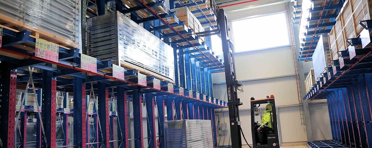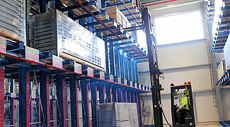 Inwestycja w nową halę wysyłkową przyczyniła się do znacznego zwiększenia pojemności magazynowej po stronie firmy Kardex. Firma przechowuje w hali komponenty i podzespoły dla własnych systemów intralogistycznych, zanim zostaną one wysłane do klienta. Łącznie dziewięć regałów wspornikowych OHRA o długości do 48 metrów oferuje na czterech poziomach magazynowych wystarczającą ilość miejsca dla paczek o długości od 1250 do 4300 milimetrów. Każdy wspornik może udźwignąć do 1250 kilogramów, a każdy słup do 3750 kilogramów na stronę. Zastosowanie bocznej układarki umożliwiło firmie Kardex utrzymanie wąskich ścieżek przejazdowych między regałami wspornikowymi, a tym samym osiągnięcie wysokiego wykorzystania przestrzeni. Uzupełnienie dla regałów wspornikowych stanowią standardowe regały paletowe oraz dwa regały paletowe o podwójnej głębokości, każdy o obciążeniu powierzchni rzędu 2400 kilogramów. Regały o podwójnej głębokości są w stanie pomieścić paczki o głębokości 3,2 metra i wadze do 1,5 tony.