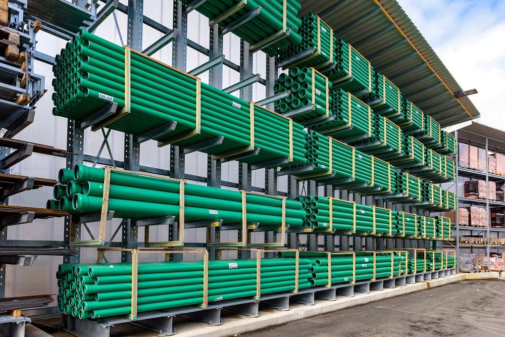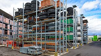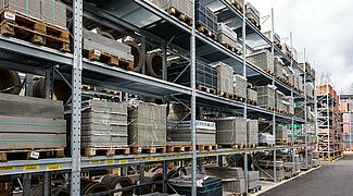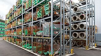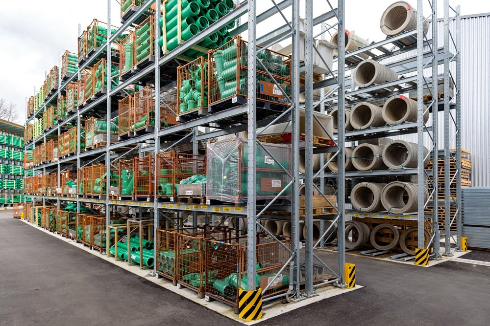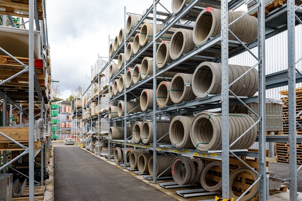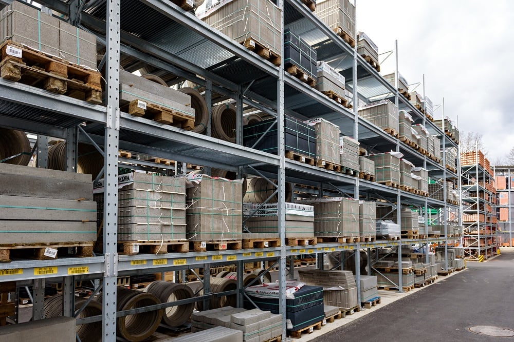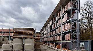 Do składowania takiej różnorodności materiałów firma Kraft wyposażyła nowy magazyn zewnętrzny ponownie w regały paletowe i wspornikowe firmy OHRA. Przekonała się ona już co do ich jakości w innych swoich filiach sprzedających materiały budowlane. Firma OHRA stosuje wyłącznie masywne profile stalowe do elementów nośnych swoich regałów. Dlatego też jest to podstawa wysokiej nośności i smukłej konstrukcji regałów. Regały paletowe oferują obciążenie półek do 4500 kilogramów, stojaki regałów wspornikowych do 5000 kilogramów, a każde pojedyncze ramię do 1000 kilogramów.