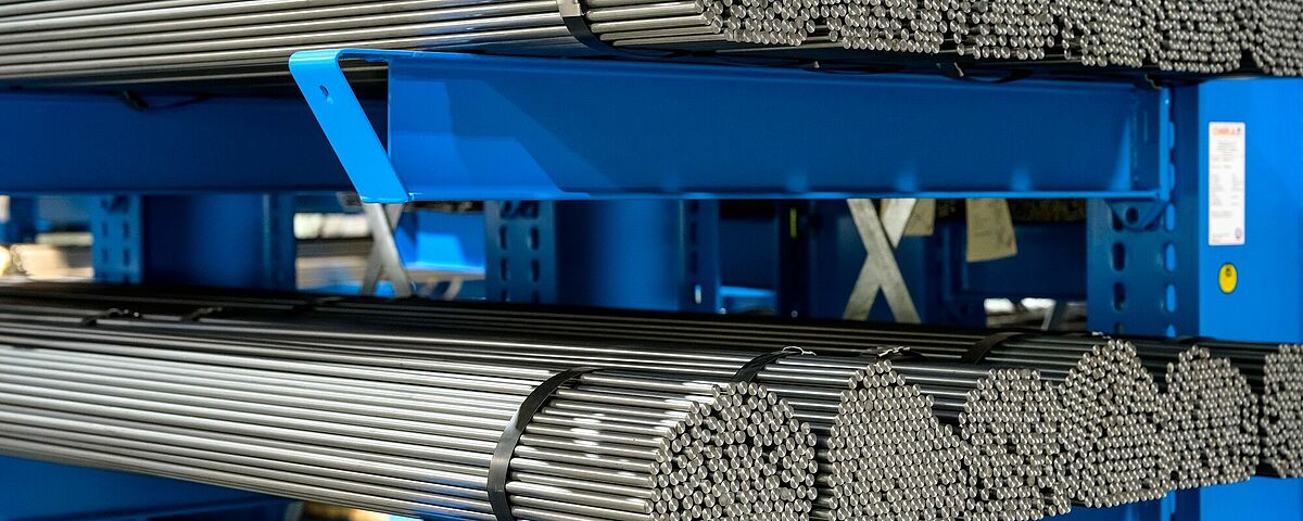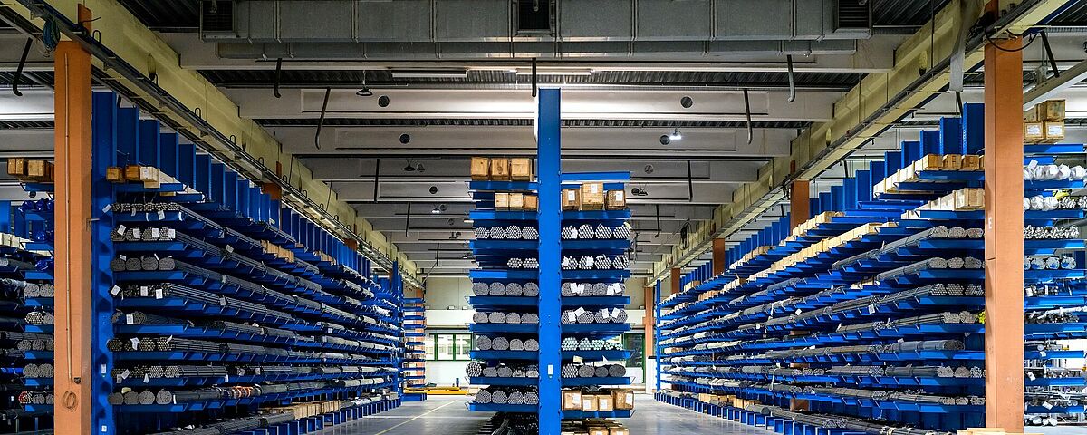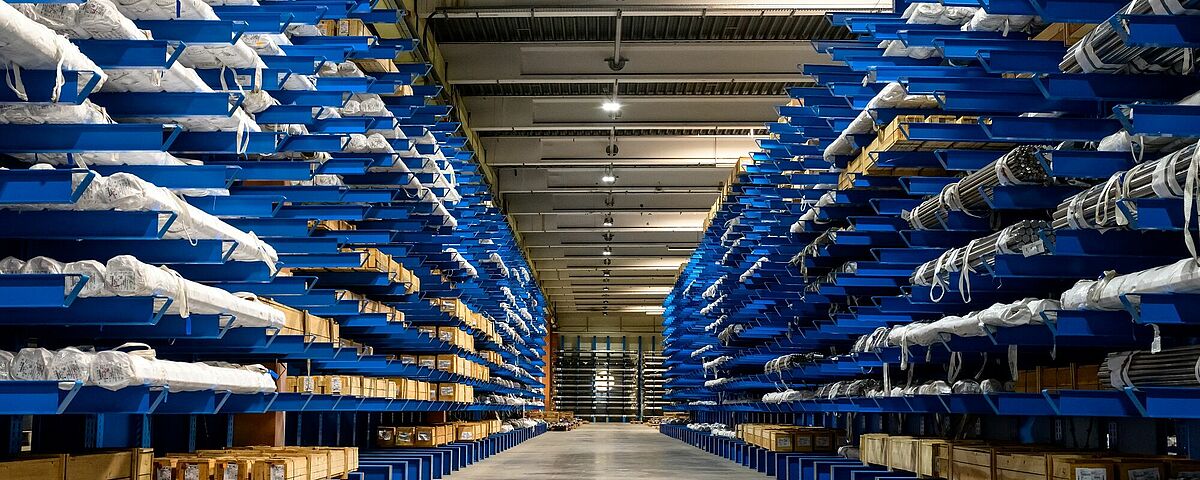 Z tego względu wykorzystanie wózków widłowych stało się podstawą koncepcji nowego magazynu towarów długich: Stale jasne i nierdzewne należy przechowywać w długich formatach i długościach wiązek od 3 do 6 metrów na regałach wspornikowych. Dzięki temu za pomocą wózka widłowego można szybko i precyzyjnie uzyskać dostęp do poszczególnych artykułów. Należy stosować standardowe wózki widłowe o klasie udźwigu 5 ton, które mogą w wygodny sposób transportować ładunki do 4 ton. Każda półka powinna dać się zapełnić jednym ładunkiem wózka widłowego, aby procesy były jak najprostsze. Wiedmann ustalił 5,5 metra jako bezpieczną wysokość podnoszenia do osiągnięcia.