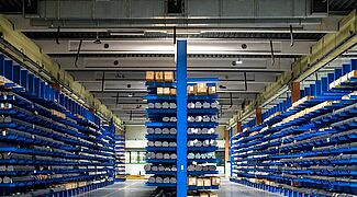 W ten sposób stworzono ramowe warunki dla systemu regałów wspornikowych: Górny poziom składowania 5,25 m, dziesięć poziomów składowania, obciążenie półki 4 tony, obciążenie regału 40 ton. „Tylko kilku producentów regałów ma w swojej ofercie standardowe regały dla tak dużych obciążeń”, uzupełnia Wiedmann. Z drugiej strony firma OHRA była w stanie zaproponować właściwą koncepcję. Dzięki zastosowaniu pełnych profili stalowych do wszystkich elementów nośnych regały wspornikowe firmy z Kerpen są niezwykle stabilne. „Ważna była dla nas również drobna siatka podwieszanych wsporników – zaledwie 5 centymetrów”, mówi Wiedmann. „Dzięki temu możemy bardzo precyzyjnie dostosować wysokość półek do rzeczywistej wysokości paczek. Oznacza to, że przechowujemy odpowiednio mniej powietrza lub możemy zminimalizować wymagane wysokości podnoszenia – każdy zaoszczędzony centymetr skraca czas obsługi”.