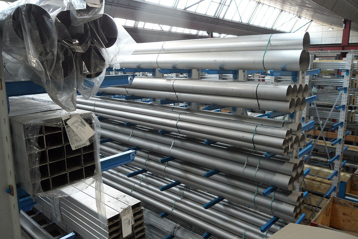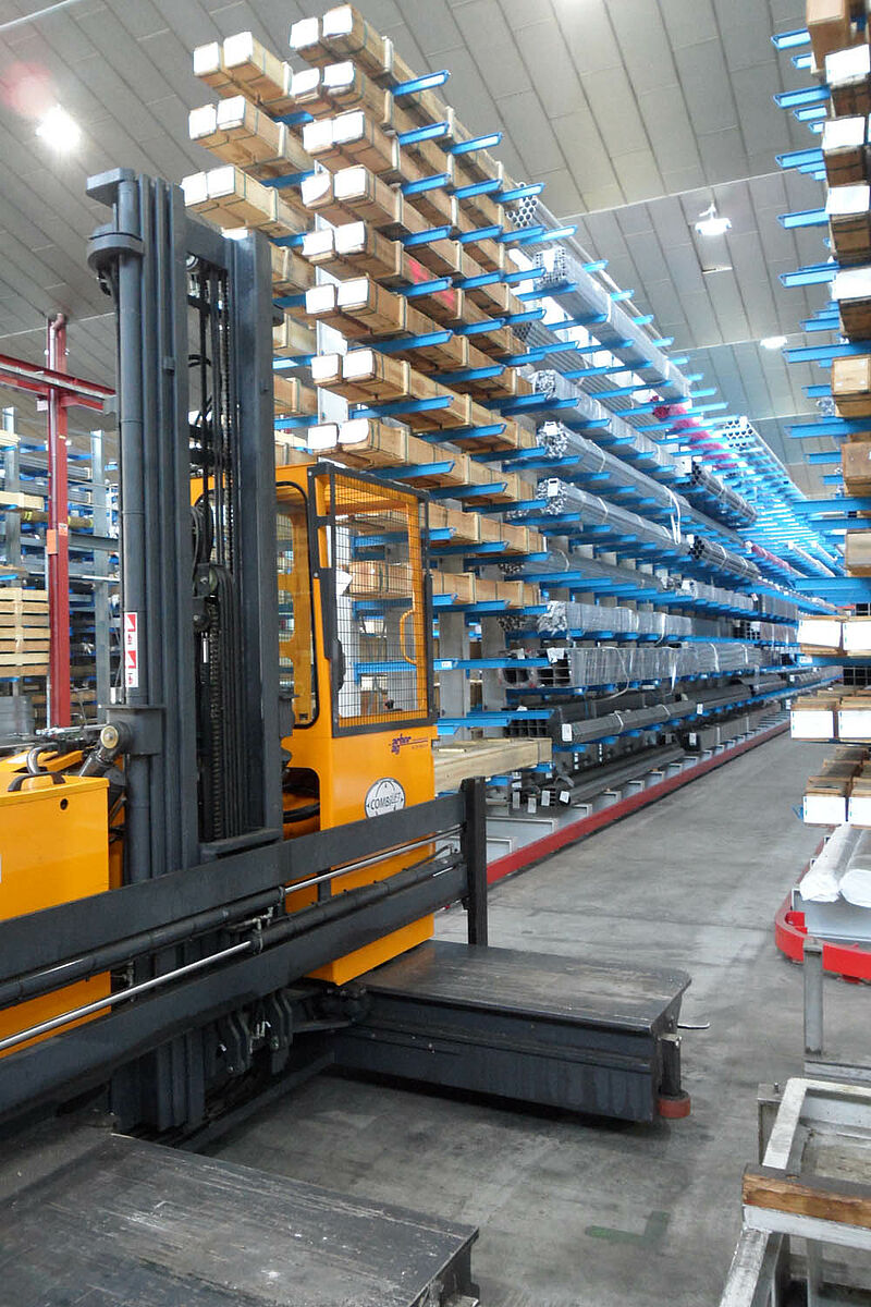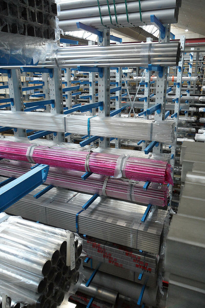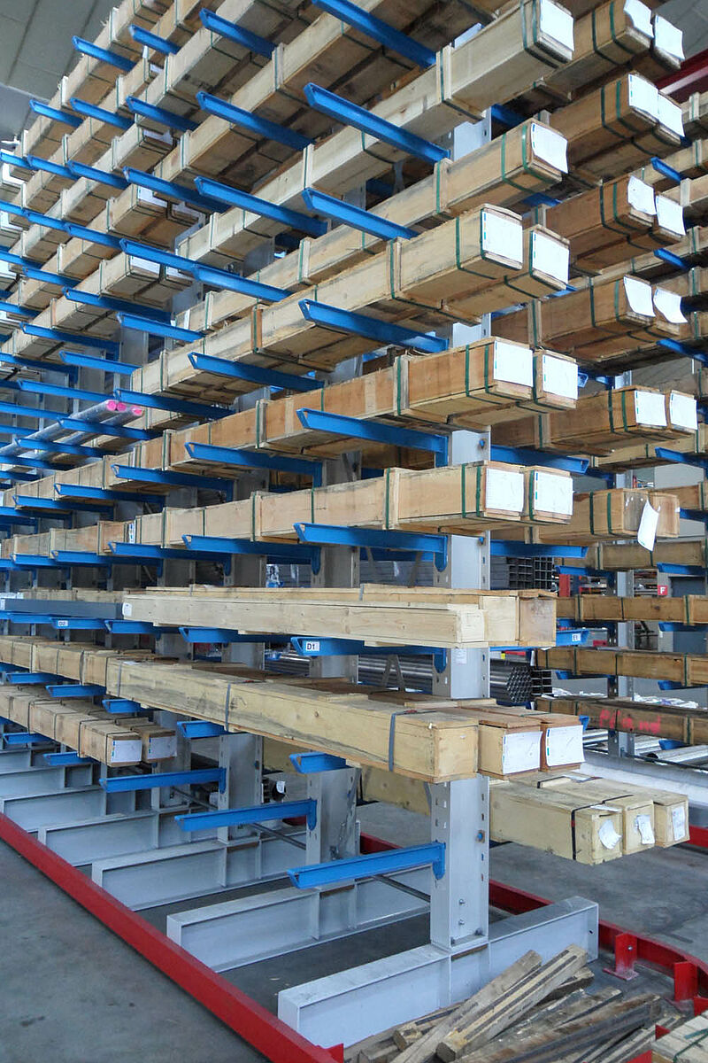 Dlatego firma Notz zdecydowała się na system regałów wysięgnikowych marki OHRA. Te mające siedzibę w niemieckim Kerpen przedsiębiorstwo produkuje regały ze stabilnych, walcowanych na gorąco profili stalowych, które pozwalają na wykorzystanie dużych wysokości zabudowy i na duże obciążenia. Poza tym regały wysięgnikowe OHRA są zawieszane w profilach wykrawanych we wspornikach, a nie są skręcane lub spawane. Dzięki temu można szybko zmienić - i to bez użycia narzędzi - wysokość poszczególnych półek. Dokładnie ta możliwość była dla firmy Notz warunkiem dla uzyskania uniwersalności systemu regałowego - bowiem dzięki temu można składować różne produkty, jak pręty stalowe, rury, kątowniki, niepowleczoną stal lub półfabrykaty o długości 3 i 6 metrów.
