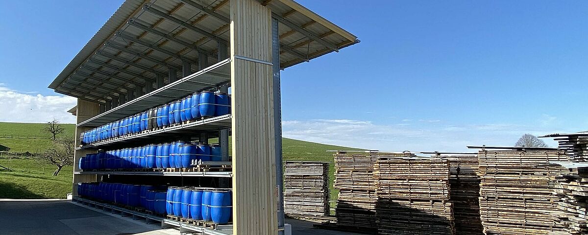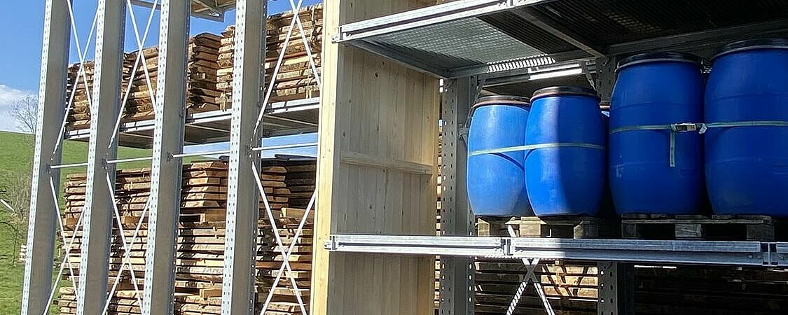 Do tej pory firma Nyfeler składowała deski z bloków bukowych, które stolarnia wykorzystuje między innymi do produkcji systemu z torem kulkowym CUBORO, a także drewno opałowe i inne produkty w stosach ułożonych na zewnątrz. Używane do tego celu europalety ulegały jednak ciągłym wpływom atmosferycznym, co prowadziło do tego, że powstawały niebezpiecznie krzywe stosy. W celu uzyskania dostępu do towarów produkty musiały być również w uciążliwy sposób przekładane na inne stosy. Aby zabezpieczyć produkty przed warunkami atmosferycznymi, firma Nyfeler przykrywała również każdy stos plandekami – co oznaczało dużo dodatkowego nakładu pracy podczas obsługi. Magazyn zajmował również zbyt dużą powierzchnię.