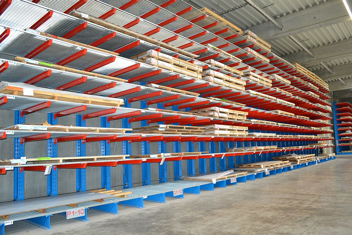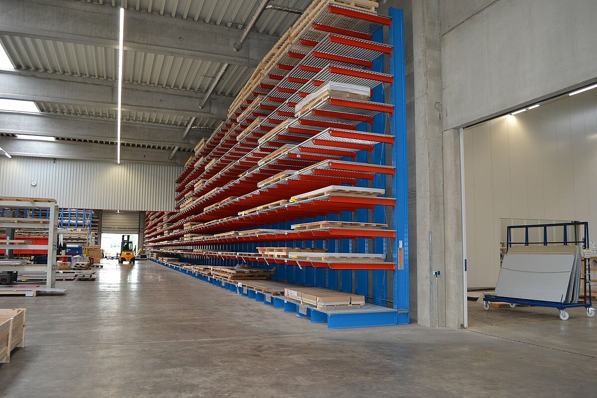 Aby szybko uzyskać dostęp do arkuszy o wielkości od 1000 × 2000 mm do 2000 × 6000 mm na nowej produkcji, Ronge Profil postanowił zainstalować regały wspornikowe OHRA. Różnią się od standardowych regałów zastosowaniem pełnych profili stalowych do wszystkich elementów nośnych. Jest to podstawa wysokiej nośności i smukłej konstrukcji regałów, co zapewnia kompaktowe miejsce do magazynowania na niewielkiej powierzchni.