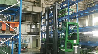 W porównaniu do alternatywnego magazynowania na podłodze, Solvaro może przechowywać znacznie więcej narzędzi do termoformowania na dostępnej przestrzeni dzięki nowemu systemowi regałów. Ważniejszy jest jednak bezpośredni, szybki dostęp do każdego narzędzia: specjalny wózek widłowy firmy Combilift, zakupiony specjalnie dla narzędzi do termoformowania, może z łatwością podnosić ciężkie narzędzia z regału i przenosić je bezpośrednio do prasy termoformującej. Jednocześnie narzędzie do termoformowania jest chronione przed uszkodzeniem przez cały czas dzięki dostosowanej konstrukcji regału.