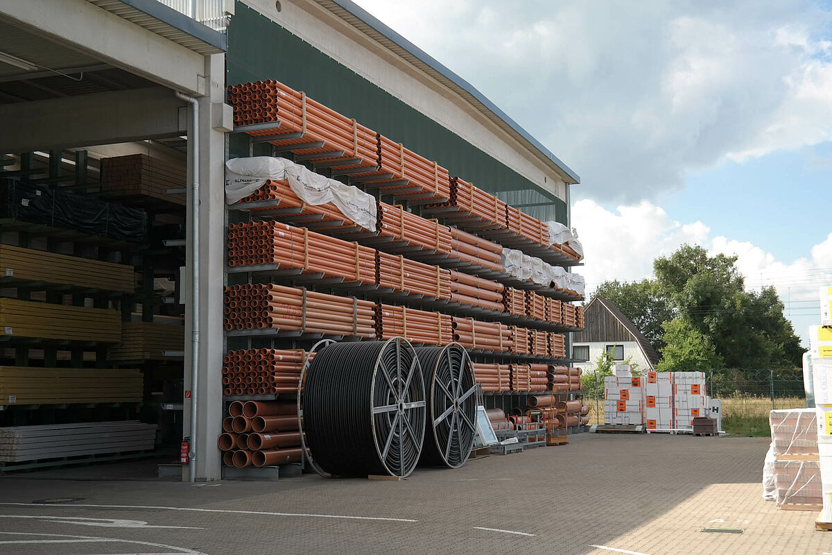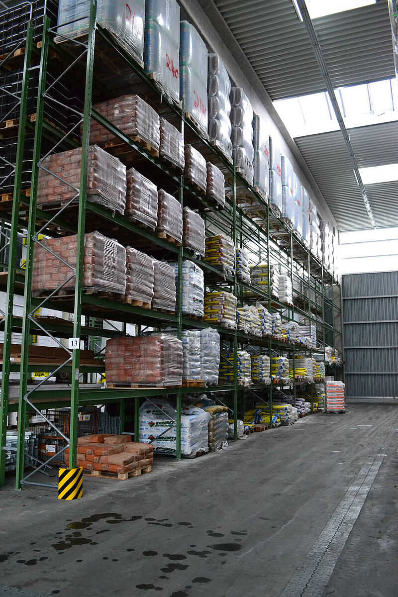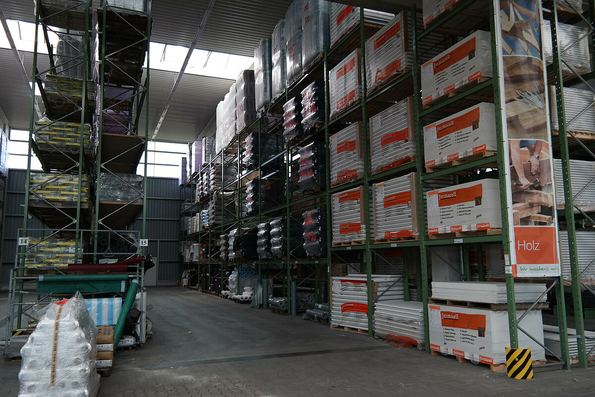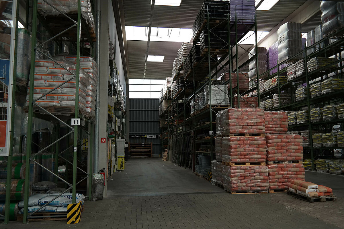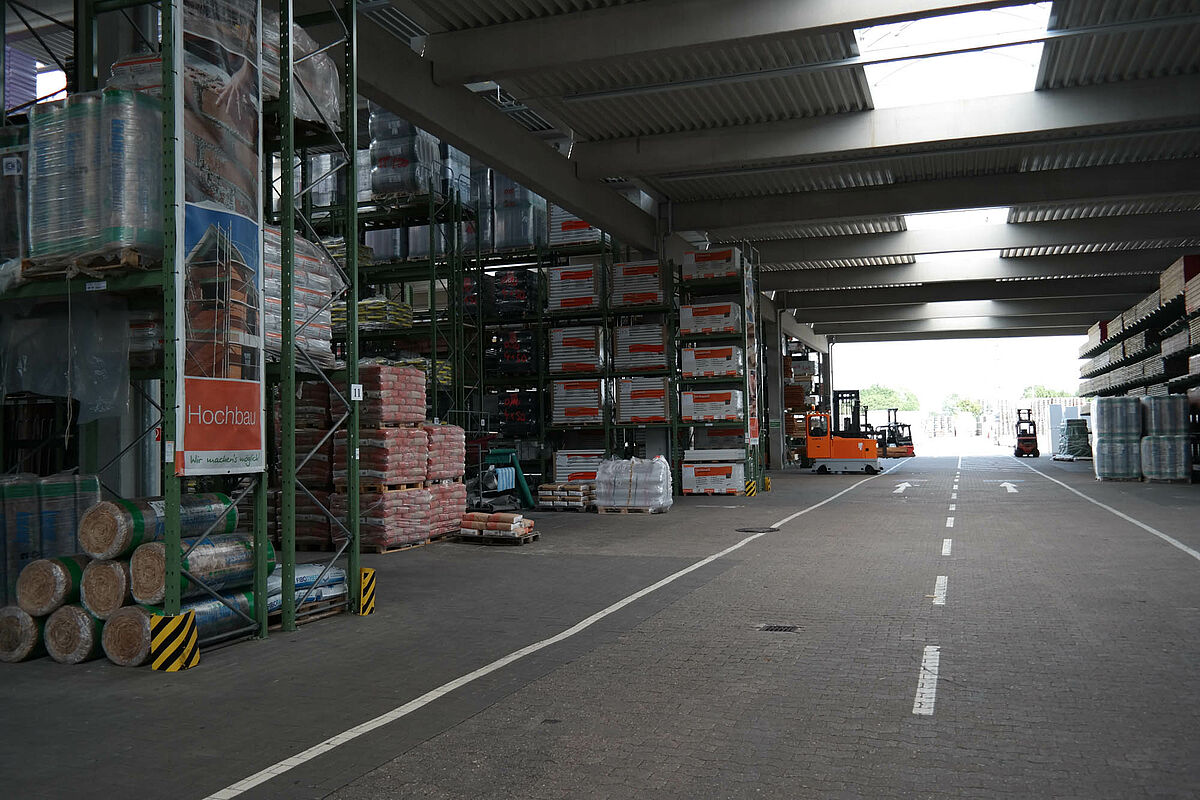 Z tego względu przedsiębiorstwo team baucenter zdecydowało się na poprawę jakości składowania poprzez wyposażenie nowej hali magazynowej. Oferuje ona więcej miejsca dla szerszego asortymentu towarów i umożliwia przechowywanie całej palety produktów - to podstawa do szybkiego komisjonowania. Przede wszystkim dzięki nowej hali więcej towarów można składować pod dachem, a załadunek i wyładunek samochodów ciężarowych nie odbywa się w słońcu lub w deszczu,