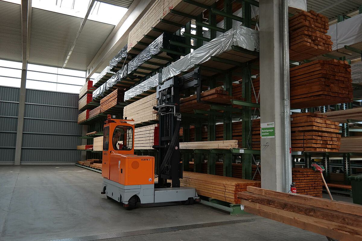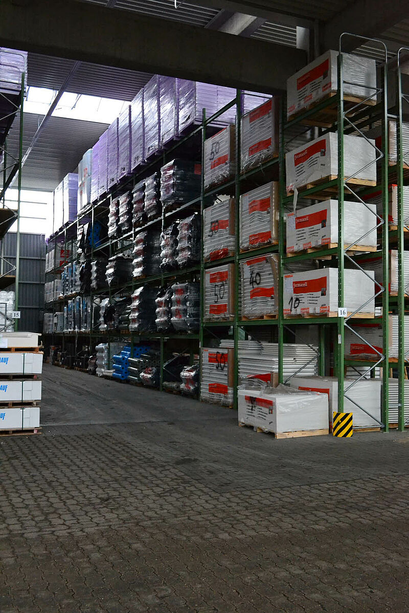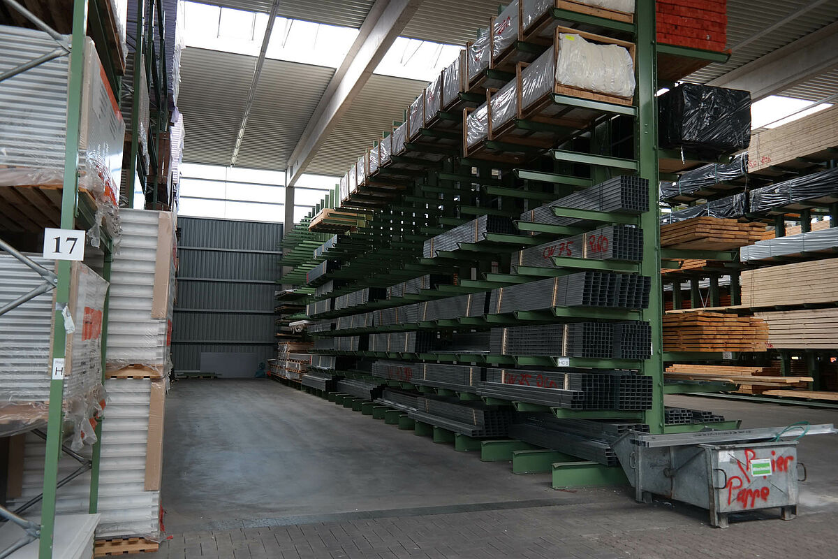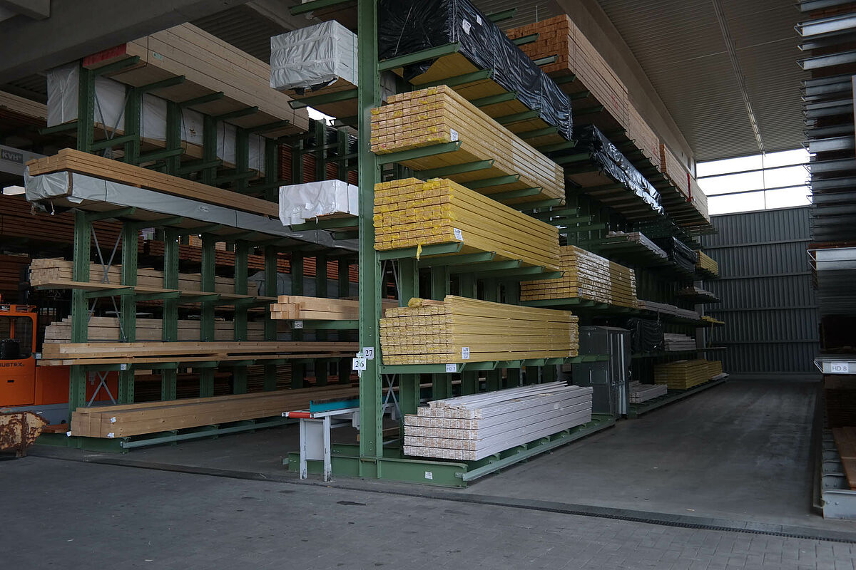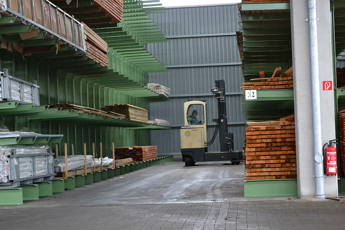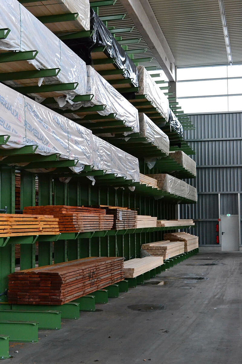Eksperci OHRA zamontowali w tym celu 17 rzędów regałów paletowych (ok. 130 miejsc na palety w każdym rzędzie) i dziesięć rzędów regałów wysięgnikowych. Regały mają wysokość 7,5 metrów i długość między 27 i 31 metrów. Zależnie od produktu składowanie odbywa się na czterech do pięciu poziomach. Obsługa odbywa się za pomocą elektrycznych wózków widłowych.