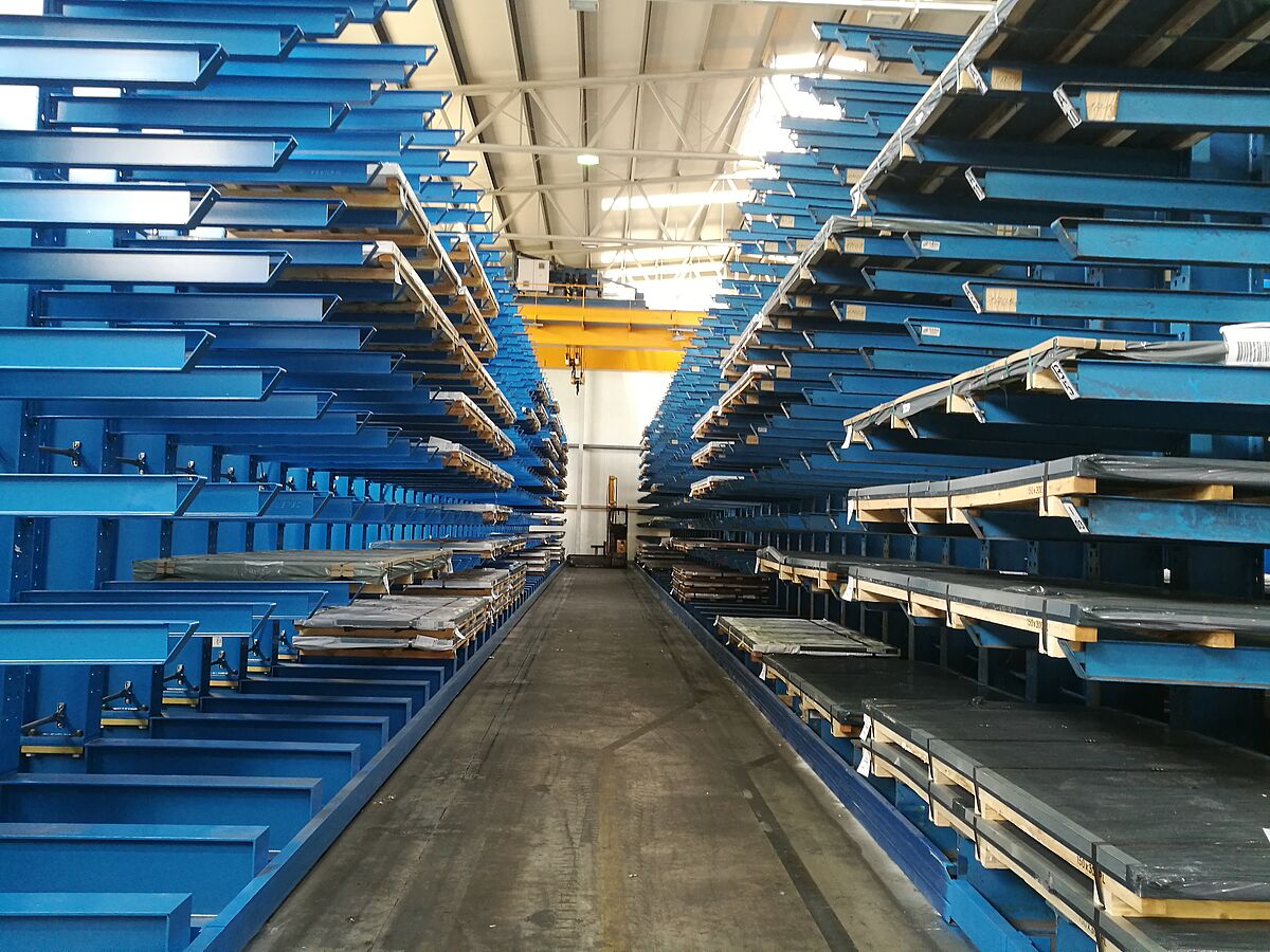 Firma thyssenkrupp wybrała do swojego magazynu czterościeżkowego regały wspornikowe OHRA: W tym przypadku wsporniki zostały podwieszone, dzięki czemu mogą amortyzować uderzenia. Ogranicza to do minimum powstawanie uszkodzeń towarów i samych regałów oraz redukuje nakłady związane z pracami konserwacyjnymi. Dodatkowo, dzięki konstrukcji z walcowanych na gorąco profili stalowych z pełnymi ścianami, regały OHRA zapewniają wysoką nośność. Zainstalowane w thyssenkrupp Materials regały o wysokości 6 metrów dysponują dziesięcioma poziomami składowania. Każdy ze wsporników o długości 1500 mm utrzymuje obciążenie do 1400 kg. Zamontowane przy stojakach szyny prowadzące umożliwiają zastosowanie wózków podnośnikowych do wąskich korytarzy – w ten sposób zostało zoptymalizowane użycie powierzchni magazynowej, a pojemności magazynowe wyraźnie wzrosły.