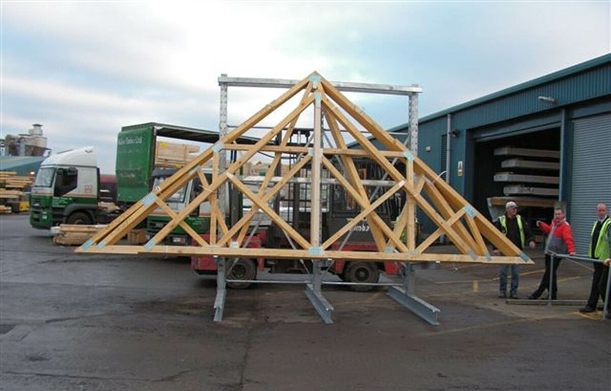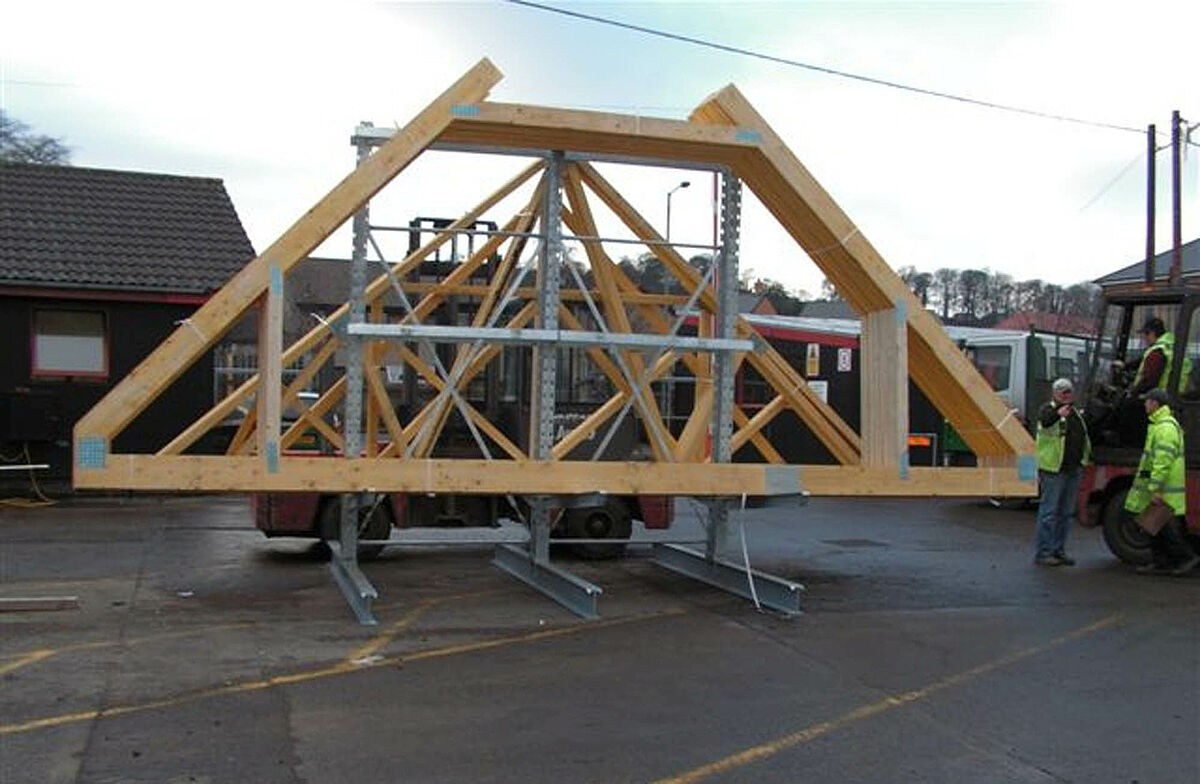 Walker Timber Ltd., z siedzibą w Bo`ness koło Edynburga specjalizuje się w produkcji wiązarów dachowych, w związku z tym potrzebuje regałów do składowania tych gotowych produktów. Wiązary dachowe powinny być składowane bezpiecznie na stojących na placu regałach z możliwością kompletacji, do czasu przeładowania ich na ciężarówki.