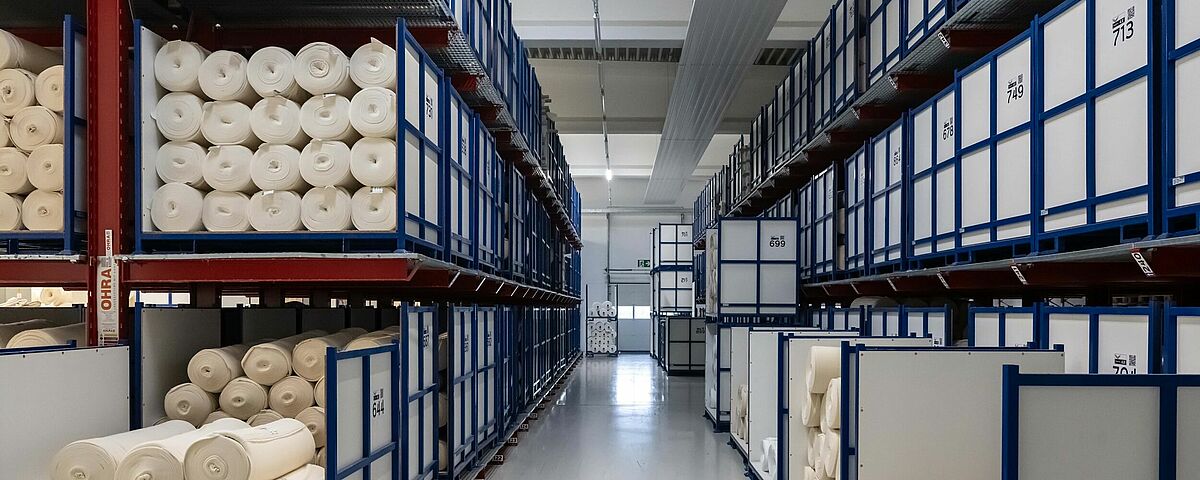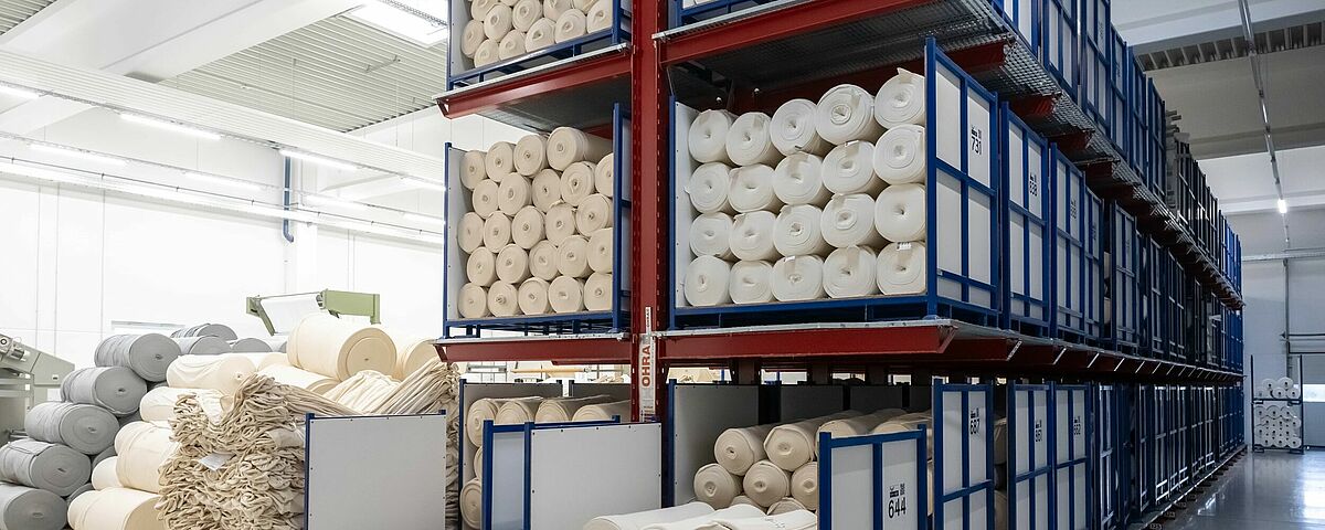 Dzięki zmianie magazynu z wersji podłogowej na regałową, trigema, największy niemiecki producent odzieży sportowej i rekreacyjnej, jest w stanie znacznie lepiej zaopatrywać swoją produkcję. W tym celu firma OHRA zainstalowała regały wspornikowe i paletowe, na których są tymczasowo przechowywane materiały produkowane we własnej dziewiarni, zanim zostaną one wysłane do działu wykończeniowego w celu przetworzenia. Ruszty kratowe umożliwiają przy tym przechowywanie materiałów w różnych warunkach, niezależnie od formatu i pomocniczych środków magazynowych. Dzięki procesowi magazynowania na regałach OHRA firma trigema była w stanie zwiększyć wydajność produkcji o 5 procent.